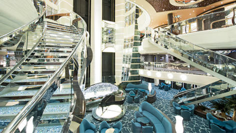 The classic design of beautifully∘ crafted msc preziosa includes spectacular features such as a real stone piazza ,sweeping swarovski crystal∘ staircases and a magical 'infinity' pool.
